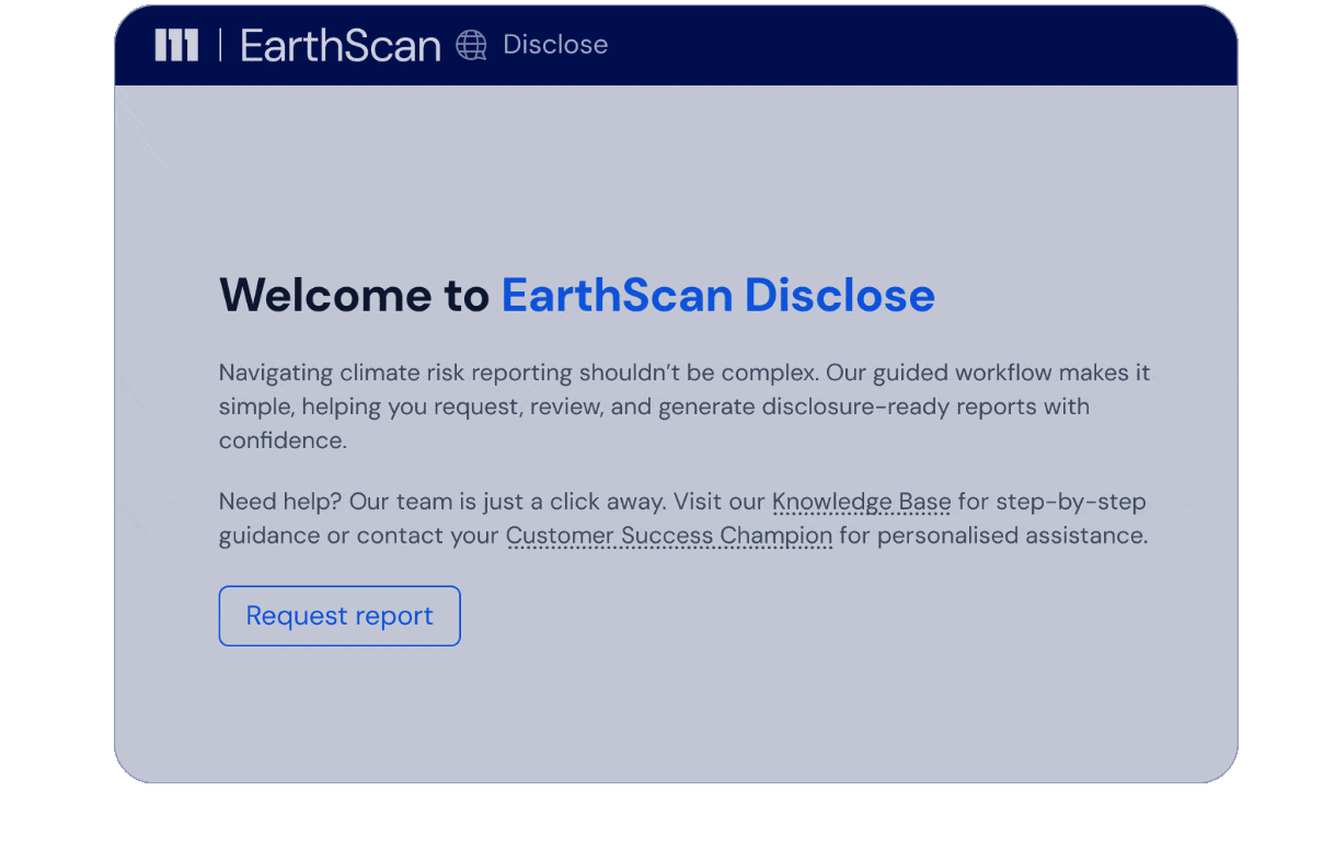 Disclose was built to remove the friction from physical climate risk reporting, giving teams everything they need to deliver credible, regulator-aligned disclosures without the manual work.
